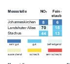 Das Bayerische Landesamt für Umwelt meldete gestern um 16 Uhr folgende Werte (Mikrogramm pro Kubikmeter; Feinstaub PM10: gleitender 24-Stunden-Mittelwert; Stickstoffdioxid: höchster 1-Stunden-Mittelwert im Zeitraum von 0 bis... zum Artikel