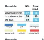 Das Bayerische Landesamt für Umwelt meldete gestern um 16 Uhr folgende Werte (Mikrogramm pro Kubikmeter; Feinstaub PM10: gleitender 24-Stunden-Mittelwert; Stickstoffdioxid: höchster 1-Stunden-Mittelwert im Zeitraum von 0 bis... zum Artikel