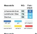 Das Bayerische Landesamt für Umwelt meldete gestern um 16 Uhr folgende Werte (Mikrogramm pro Kubikmeter; Feinstaub PM10: gleitender 24-Stunden-Mittelwert; Stickstoffdioxid: höchster 1-Stunden-Mittelwert im Zeitraum von 0 bis... zum Artikel