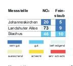 Das Bayerische Landesamt für Umwelt meldete gestern um 16 Uhr folgende Werte (Mikrogramm pro Kubikmeter; Feinstaub PM10: gleitender 24-Stunden-Mittelwert; Stickstoffdioxid: höchster 1-Stunden-Mittelwert im Zeitraum von 0 bis... zum Artikel