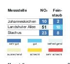 Das Bayerische Landesamt für Umwelt meldete gestern um 16 Uhr folgende Werte (Mikrogramm pro Kubikmeter; Feinstaub PM10: gleitender 24-Stunden-Mittelwert; Stickstoffdioxid: höchster 1-Stunden-Mittelwert im Zeitraum von 0 bis... zum Artikel