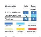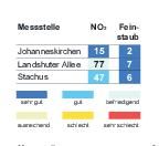 Das Bayerische Landesamt für Umwelt meldete gestern um 16 Uhr folgende Werte (Mikrogramm pro Kubikmeter; Feinstaub PM10: gleitender 24-Stunden-Mittelwert; Stickstoffdioxid: höchster 1-Stunden-Mittelwert im Zeitraum von 0 bis... zum Artikel