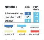 Das Bayerische Landesamt für Umwelt meldete gestern um 16 Uhr folgende Werte (Mikrogramm pro Kubikmeter; Feinstaub PM10: gleitender 24-Stunden-Mittelwert; Stickstoffdioxid: höchster 1-Stunden-Mittelwert im Zeitraum von 0 bis... zum Artikel
