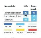 Das Bayerische Landesamt für Umwelt meldete gestern um 16 Uhr folgende Werte (Mikrogramm pro Kubikmeter; Feinstaub PM10: gleitender 24-Stunden-Mittelwert; Stickstoffdioxid: höchster 1-Stunden-Mittelwert im Zeitraum von 0 bis... zum Artikel