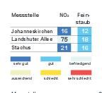 Das Bayerische Landesamt für Umwelt meldete gestern um 16 Uhr folgende Werte (Mikrogramm pro Kubikmeter; Feinstaub PM10: gleitender 24-Stunden-Mittelwert; Stickstoffdioxid: höchster 1-Stunden-Mittelwert im Zeitraum von 0 bis... zum Artikel