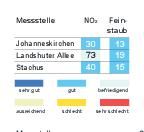 Das Bayerische Landesamt für Umwelt meldete gestern um 16 Uhr folgende Werte (Mikrogramm pro Kubikmeter; Feinstaub PM10: gleitender 24-Stunden-Mittelwert; Stickstoffdioxid: höchster 1-Stunden-Mittelwert im Zeitraum von 0 bis... zum Artikel