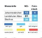 Das Bayerische Landesamt für Umwelt meldete gestern um 16 Uhr folgende Werte (Mikrogramm pro Kubikmeter; Feinstaub PM10: gleitender 24-Stunden-Mittelwert; Stickstoffdioxid: höchster 1-Stunden-Mittelwert im Zeitraum von 0 bis... zum Artikel