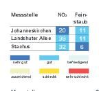 Das Bayerische Landesamt für Umwelt meldete gestern um 16 Uhr folgende Werte (Mikrogramm pro Kubikmeter; Feinstaub PM10: gleitender 24-Stunden-Mittelwert; Stickstoffdioxid: höchster 1-Stunden-Mittelwert im Zeitraum von 0 bis... zum Artikel