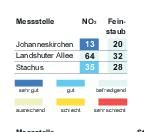 Das Bayerische Landesamt für Umwelt meldete gestern um 16 Uhr folgende Werte (Mikrogramm pro Kubikmeter; Feinstaub PM10: gleitender 24-Stunden-Mittelwert; Stickstoffdioxid: höchster 1-Stunden-Mittelwert im Zeitraum von 0 bis... zum Artikel