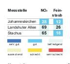 Das Bayerische Landesamt für Umwelt meldete gestern um 16 Uhr folgende Werte (Mikrogramm pro Kubikmeter; Feinstaub PM10: gleitender 24-Stunden-Mittelwert; Stickstoffdioxid: höchster 1-Stunden-Mittelwert im Zeitraum von 0 bis... zum Artikel