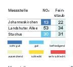 Das Bayerische Landesamt für Umwelt meldete gestern um 16 Uhr folgende Werte (Mikrogramm pro Kubikmeter; Feinstaub PM10: gleitender 24-Stunden-Mittelwert; Stickstoffdioxid: höchster 1-Stunden-Mittelwert im Zeitraum von 0 bis... zum Artikel