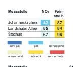 Das Bayerische Landesamt für Umwelt meldete gestern um 16 Uhr folgende Werte (Mikrogramm pro Kubikmeter; Feinstaub PM10: gleitender 24-Stunden-Mittelwert; Stickstoffdioxid: höchster 1-Stunden-Mittelwert im Zeitraum von 0 bis... zum Artikel