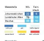 Das Bayerische Landesamt für Umwelt meldete gestern um 16 Uhr folgende Werte (Mikrogramm pro Kubikmeter; Feinstaub PM10: gleitender 24-Stunden-Mittelwert; Stickstoffdioxid: höchster 1-Stunden-Mittelwert im Zeitraum von 0 bis... zum Artikel