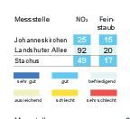 Das Bayerische Landesamt für Umwelt meldete gestern um 16 Uhr folgende Werte (Mikrogramm pro Kubikmeter; Feinstaub PM10: gleitender 24-Stunden-Mittelwert; Stickstoffdioxid: höchster 1-Stunden-Mittelwert im Zeitraum von 0 bis... zum Artikel