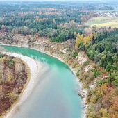 Blick vom Aussichtspunkt am Innprallhang mit Flossing im Hintergrund. Foto Franz Schiller zum Artikel