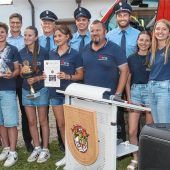 50. Jahre Jugendwehr: Ein guter Grund, mit 55 Jugendmannschaften aus dem gesamten Landkreis zu feiern und eine Löschwassersuchwanderung zu veranstalten. Den Pokal holte sich die Jugendfeuerwehr Gumattenkirchen 2 (vordere Reihe). Foto KRETSCHKO zum Artikel