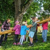 Kirchdorf hält zusammen: beim Maibaumaufstellen, dem Bau eines Geräteschuppens am Sportplatz oder eines Baumhauses für die „Gartenpiraten“ (Foto). zum Artikel