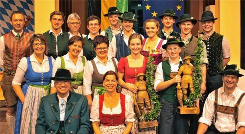 Auch nach 50 Jahren hat der Wettbewerb um den begehrten Volksmusikpreis „Traunsteiner Lindl“ nichts von seiner Anziehungskraft verloren. Eine Bühne voller ausgezeichneter Sänger und Musikanten zwischen acht und 83 Jahren, ein begeistertes Publikum und Traudi Siferlinger (vorne Mitte) als sachkundige