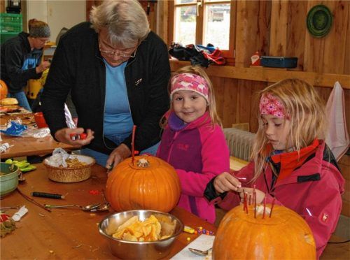 Schon seit 15 Jahren lädt der Gartenbauverein Marquartstein im Herbst zum Kürbisschnitzen. Auch diesmal kamen über 20 Kinder in den Vereinsstadel, um mit Hilfe von Messern und Löffeln orangefarbene Riesenkürbisse in gruselige Geister zu verwandeln. Als es danach zur Stärkung hausgemachte Kürbissuppe