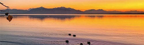 Gerade die Adventszeit steht für stimmungsvolle Momente. Dafür bekannt ist auch die sogenannte blaue Stunde, die den Anbruch des Abends einläutet. Eine fantastische Stimmung zeigte sich dabei am Chiemsee, als Horizont und See in wärmenden Farben leuchteten. Im Hintergrund zeichnen die Berge mit der