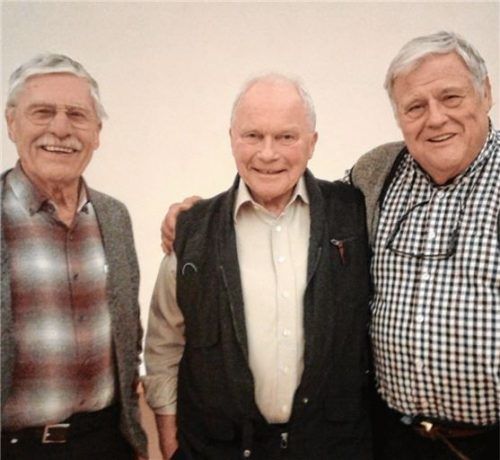 Runde 70 Jahre bereicherte Herbert Donauer (Mitte) die Kirchenmusik in Übersee, zuerst als junger Geigenspieler und Klarinettist im Kirchenorchester, dann ab 1955 mit seiner Bassstimme im Kirchenchor. Auf fast 50 Jahre Dienst an der Kirchenmusik kommt Christian Stein (links) als Chormitglied. Sein m