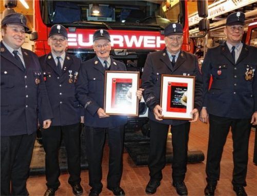 Einsatzbereit sind in Reit im Winkl derzeit 58 aktive Feuerwehrmänner und zehn Anwärter; zu 70 Einsätzen rückten sie 2019 aus. Jetzt wurden langjährige Mitglieder geehrt (von links): Stefan Huber, Matthias Lengg, Andreas Meier junior, Matthias Meier, Stefan Treml, Max Weiß junior und Florian Wellnit