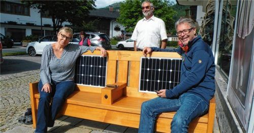 Zum Auftanken in zweifacher Hinsicht lädt das Sesshaft-Bankerl ein, das das Angenehme mit dem Nützlichen in Ruhpolding verbindet. Das raffinierte Sitzmöbel bietet nämlich Passanten und Einkaufsbummlern neben einer kurzen Rast auch die Möglichkeit, kostenlos ihr Smartphone oder Tablett per Solarstrom