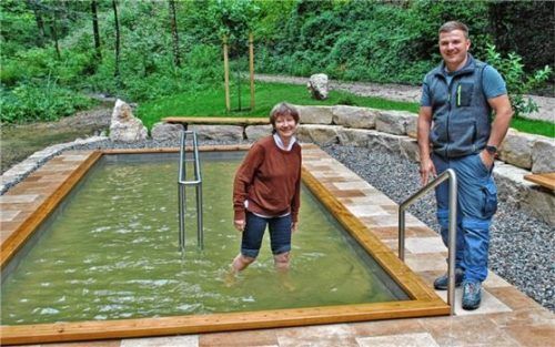 Das neu gestaltete Wasserbecken Vogllug in der Gemeinde Marquartstein wurde jetzt durch die Zweite Bürgermeisterin Claudia Kraus (links) und dem Leiter der Gemeindebetriebe, Georg Hacher, offiziell seiner Bestimmung übergeben. Mit 21500 Euro blieb die Umsetzung des Projekts knapp unter den geschätzt