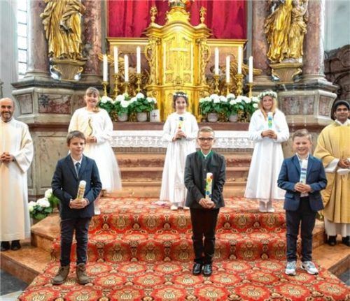 Die Erste Kommunion wurde in Prien dieses Mal in mehreren Gruppen gefeiert, damit alle Gäste der Kommunionkinder in der katholischen Pfarrkirche Mariä Himmelfahrt Platz fanden. Die acht Mädchen und elf Buben hatten sich coronabedingt überwiegend zuhause mit ihren Familien auf den Tag vorbereitet. Im