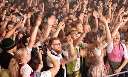 Ausgelassene Party-Stimmung im großen Festzelt in Schleching: Dafür sorgte beim 84. Gaufest des Chiemgau-Alpenverbandes für Tracht und Sitte am Freitagabend zunächst das Reitertal Quintett mit Musikern aus Reit im Winkl und Österreich. Die Bestuhlung war zuvor fast komplett ausgeräumt und auf einer