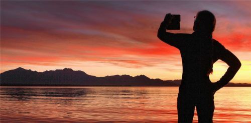 Noch einigermaßen warme Sonnenstrahlen waren in dieser Woche noch am Ostufer des Chiemsees zu genießen. Nachdem die Sonne untergegangen war, „glühte“ der Himmel bei noch milden Temperaturen ungewöhnlich lange nach. Vielleicht auch bei einer Brotzeit konnten die glücklichen Beobachter dieses Natursch