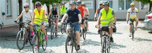 Mit einer kleinen Tour startete gestern eine kleine Gruppe die Teilnahmeaktion der Marktgemeinde Prien an der bundesweiten Kampagne „Stadtradeln“ (wir berichteten). Angeführt wurde sie von dem Priener Läufer-Ehepaar Josefine und Reinmund Hobmaier (mit Warnwesten), die noch vor Kurzem bei den Seniore