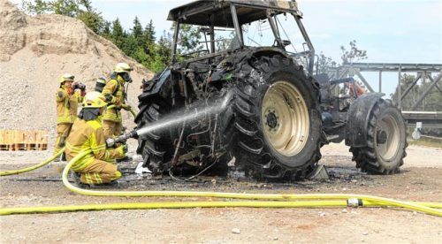 In einer Kiesgrube in Übersee ist vergangenen Mittwoch ein Traktor bei Arbeiten in Brand geraten (wir berichteten). Ein 17-jähriger Fahrer hatte während der Fahrt einen lauten Knall aus dem Motorraum bemerkt, woraufhin das Fahrzeug zu qualmen begann und kurz darauf vollständig brannte. Nach Angaben