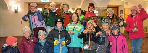 An eisigen Tagen und wenn das natürliche Futter rar wird, freuen sich Wildvögel auf Vogelfutter, Meisenknödel und Nüsse. Der Grassauer Gartenbauverein vermittelte den jüngsten Gartenfreunden nun besondere Möglichkeiten, Vogelfutter attraktiv zu verpacken. Mit geschickten Handgriffen wurden aus Weide
