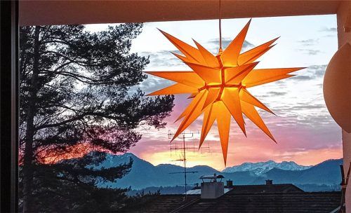 Morgenstimmung im Chiemgau: Fensterblick der Leser-Reporterin Helga Bachleitner (Rimsting) Richtung Achental mit Loferer Steinbergen. Foto bachleitner
