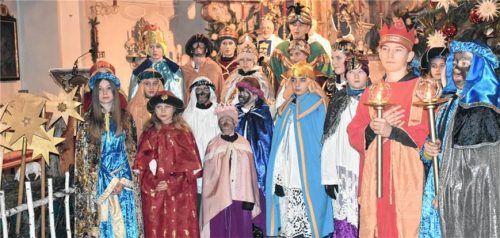 Die Kirche strahlte noch im weihnachtlichen Glanz – am Nachmittag des ersten Tages im neuen Jahr. Pfarrer Martin Straßer bezeichnete den ersten Tag im Jahr als Marienfesttag und Friedenstag für die ganze Welt. Da passte es gut, an diesem Tag die 30 Sternsinger mit dem Segen auf den Weg zu den Mensch