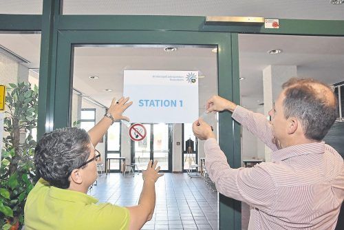 Schauplatz des ersten Massen-Gentests in der Region war am Wochenende das Bildungszentrum der Handwerkskammer in Rosenheim. Hier wird gerade ein Raum zur „Station 1“ umfunktioniert. Monate nach der Vergewaltigung einer jungen Frau am Mangfalldamm in Rosenheim waren rund 800 Männer von der Polizei zu