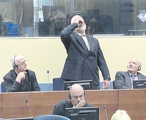 Spektakulärer Zwischenfall beim UN-Kriegsverbrechertribunal zum früheren Jugoslawien in Den Haag: Kaum hatte der Richter den Angeklagten Slobodan Praljak zu 20 Jahren Haft verurteilt, beteuerte dieser lautstark seine Unschuld, griff zu einem Fläschchen und trank den Inhalt unter den erstaunten Blick