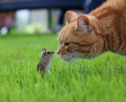 Das ist es, das Siegerbild der Blende 2017, dem Leser-Fotowettbewerb der OVB-Heimatzeitungen. Die Maus hat sich zu ihrer vollen Größe aufgestellt und schaut der Katze frech in die Augen. Die Katze starrt zurück. Wer zuerst geblinzelt hat, weiß wohl nur Frank Schmidt aus Bad Aibling, der diese tieris