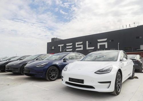 Das Tesla Model 3 ist den TÜV-Prüfern am unangenehmsten aufgefallen. Andere E-Autos können sich im Mittelfeld platzieren. Die Fehler sind dabei selten E-Auto-typisch. © Ding Ting/dpa