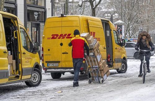 DHL wird nicht bestreikt. Wer bis Freitag ein Paket aufgibt, kann mit einer Zustellung bis Heiligabend rechnen, verspricht DHL. Auch bestreikte Firmen wollen pünktlich zustellen. © IMAGO