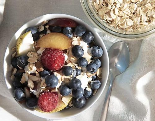 Ein selbstgemischtes Müsli mit Haferflocken und frischem Obst, aber ohne Zucker, ist ein idealer Start in den Tag. © dpa