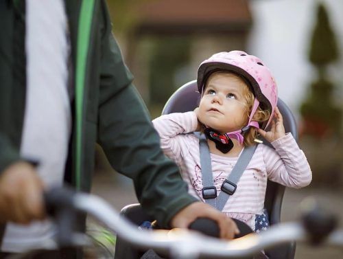 Sitzt gut: Nimmt man Kinder auf dem Rad mit, ist nicht nur ein passender Helm wichtig, sondern auch ein guter Kindersitz. © Fotos: Panthermedia, Stiftung Warentest, dpa