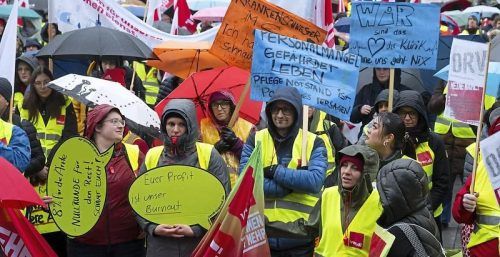 Der öffentliche Dienst kämpfte monatelang für mehr Gehalt, hier auf dem Marienplatz in München. © Sven Hoppe/dpa