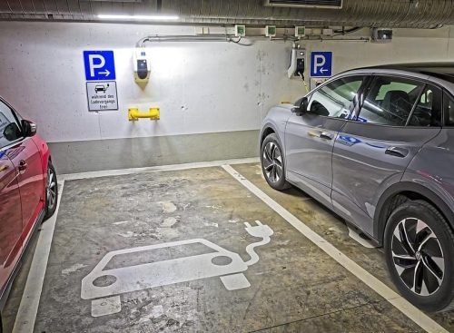 An speziellen Parkplätzen für E-Autos sieht man es: Die Deutschen sind skeptisch, was E-Mobilität betrifft. Deshalb sind viele Park- und Ladeplätze für die Stromer leer. © IMAGO/Rolf Poss