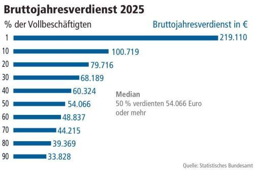 Wiesbaden/München – Die Einkommen in Deutschland bleiben ungleich verteilt: Laut den neuen Zahlen des Statistischen Bundesamts erzielten die obersten zehn Prozent der Vollzeitbeschäftigten 2025 eine