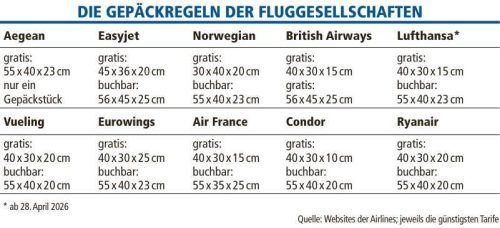 Frankfurt – Die Lufthansa streicht auf ihren Kurz- und Mittelstreckenflügen die bislang kostenfreie Mitnahme eines kleinen Kabinenkoffers. Es werde bei allen Airlines der Gruppe ein neuer „Economy Basic“-Einstiegstarif eingeführt, der einen kleinen persönlichen Gegenstand wie eine Laptop-Tasche oder