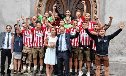 Am Samstag gab Buchbach-Kapitän Maxi Hain seiner Kathi das Jawort. Zur gro-ßen Freude des Brautpaars stand die komplette Buchbacher Regionalliga-Mannschaft mit Trainern und Betreuern vor dem Wasserburger Rathaus Spalier. Beim anschließenden Sektempfang wurde gemeinsam mit den zahlreichen Wasserburge