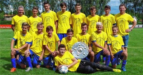 Die C-Junioren vom SV Schechen wurden Meister der Gruppe Chiem. Das erfolgreiche Team: Trainer Christian Posch, Maxi Guerra, Anian Venohr, Manu Mühlmann, Thomas Untereichmeier, Dani Washeim, Uri Ladwig, Trainer Hans Posch (hinten von links), Woife Hopfensperger, Hansi Posch, Seppi Kriechbaumer, Pete