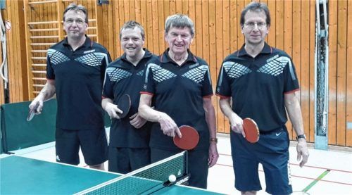 Weil man in der Rückrunde ungeschlagen blieb, sicherten sich die Herren des TuS Mettenheim 3 am Ende mit insgesamt 26:2 Punkten die Meisterschaft. Florian Wimmer blieb in der Rückrunde ungeschlagen und ging in der Endabrechnung als Zweitbester durch das Ziel. Von links nach rechts: Detlef Domdey, Fl